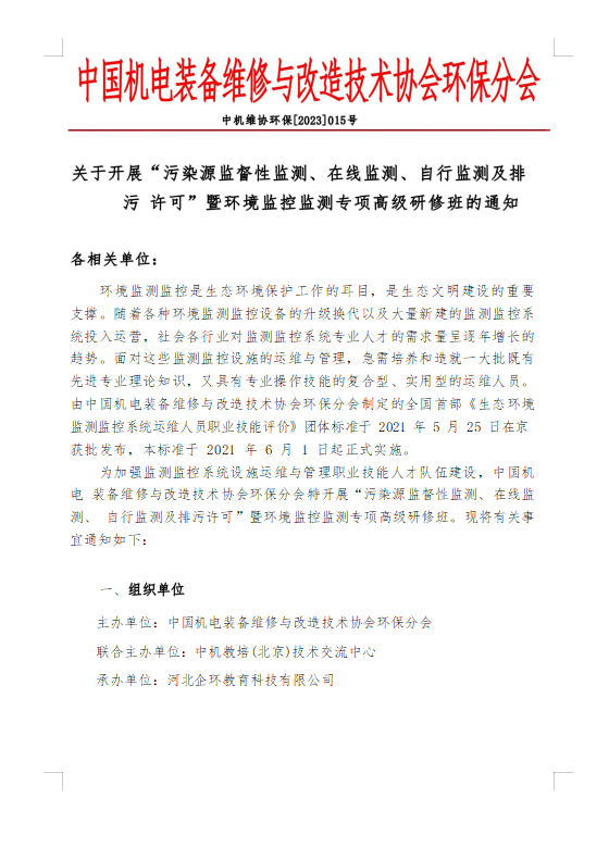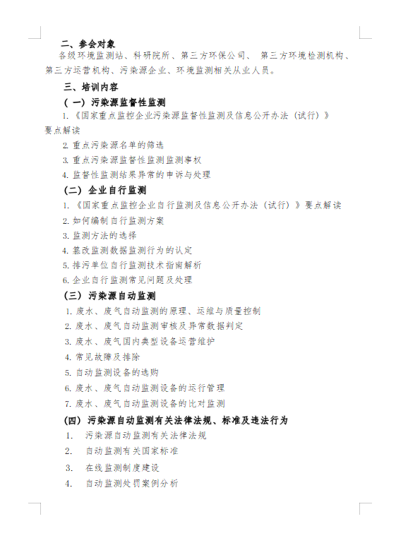 關(guān)于開(kāi)展 污染源監(jiān)督性監(jiān)測(cè)、在線監(jiān)測(cè)、 自行監(jiān)測(cè)及排污許可暨環(huán)境監(jiān)控監(jiān)測(cè)專項(xiàng)高級(jí)研修班