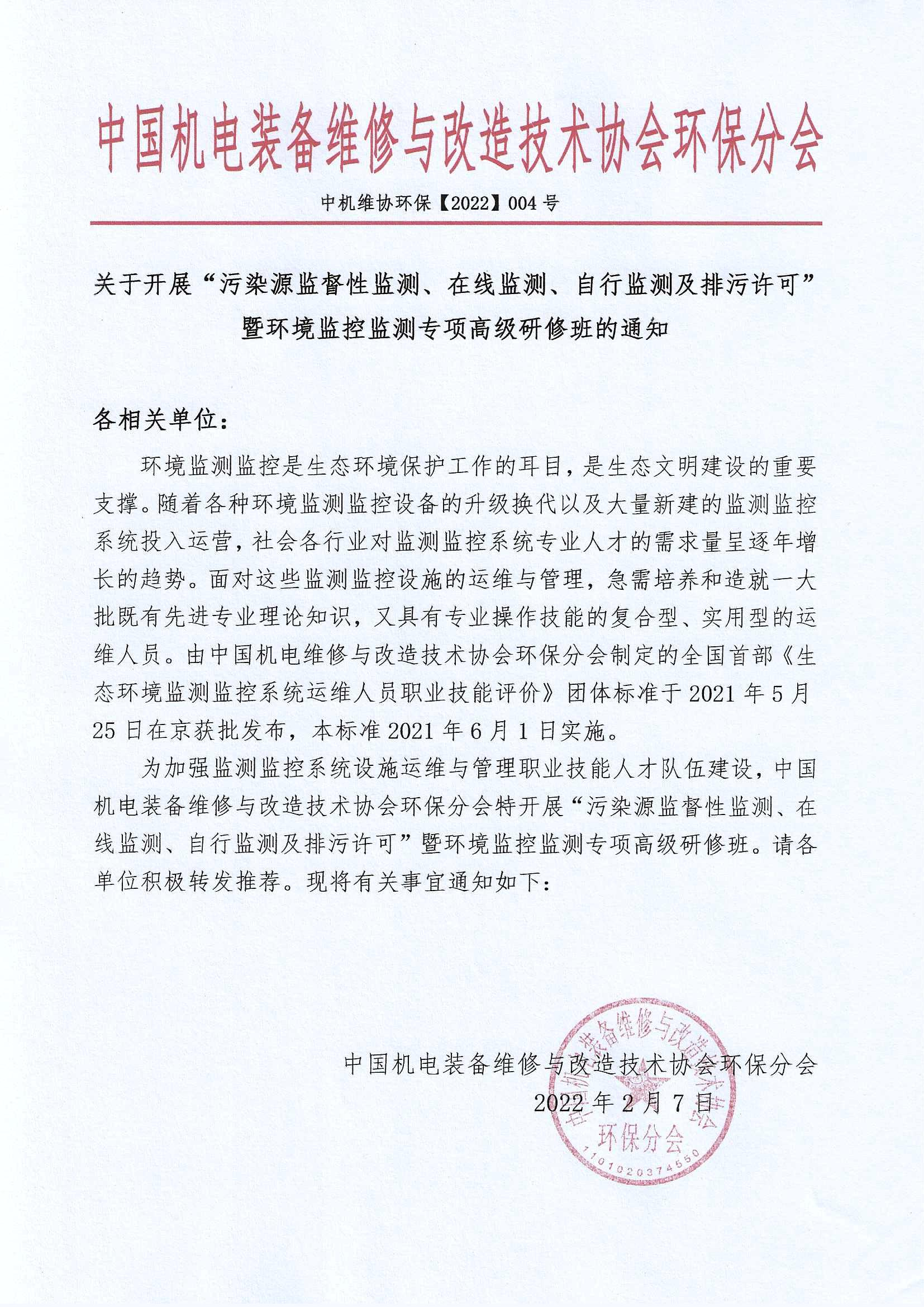 關(guān)于開展“污染源監(jiān)督性監(jiān)測(cè)、在線監(jiān)測(cè)、自行監(jiān)測(cè)及排污許可”暨環(huán)境監(jiān)控監(jiān)測(cè)專項(xiàng)高級(jí)研修班的通知!